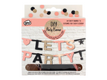 Zamontuj swoją ciepłą wiadomość i podkreśl tym samym klimat imprezy. Najlepszy stylizowany baner DIY Party! Zestaw składa się z 70 liter, 20 cyfr i 10 symboli we wspaniałej gamie złotych brokatów, różowego złota, czerni i różu.