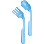Zestaw sztućców składa się z widelca i łyżki, które posiadają wyprofilowane kształty. Sztućce wykonane są z bezpiecznych materiałów przeznaczonych do kontaktu z żywnością i przyjaznych dla środowiska materiałów.