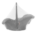Moskitiera REER 71557 to biała siatka ochronna do fotelików niemowlęcych grupy 0 i 0+, skutecznie chroniąca przed owadami, zapewniająca swobodny przepływ powietrza i bezpieczeństwo dziecka.
