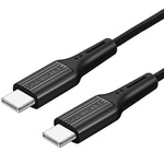 Czarny kabel z dwoma złączami USB C od SHULIANCABLE. Został wykonany z wysokiej jakości materiałów. Posiada miedziany rdzeń, gumową warstwę przeciwzakłóceniową oraz siatkę ekranującą.