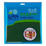OPEN BRICKS Bauplatte w oliwkowej zieleni. Ta płyta dwustronna 32x32 wypustki (25,5 x 25,5 cm) stanowi idealną bazę do budowy. Pełna kompatybilność z klockami wiodących marek, w tym z popularnymi klockami LEGO®. Rozwija myślenie i pobudza kreatywność.