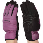 Damskie rękawice robocze marki AmazonBasics. Produkt jest wykonany z wysokiej jakości skóry syntetycznej, poliestru oraz pianki na czubkach palców, co gwarantuje bezpieczeństwo podczas pracy.
