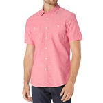 Różowa koszula męska z krótkim rękawem od marki Amazon Essentials. Rozmiar S.