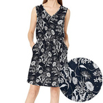 Ilość produktów: 10Sukienka wykonana z lnu oraz bawełny dla jak najlepszego komfortu użytkowania. Wykończona białymi kwiatami na granatowym tle.